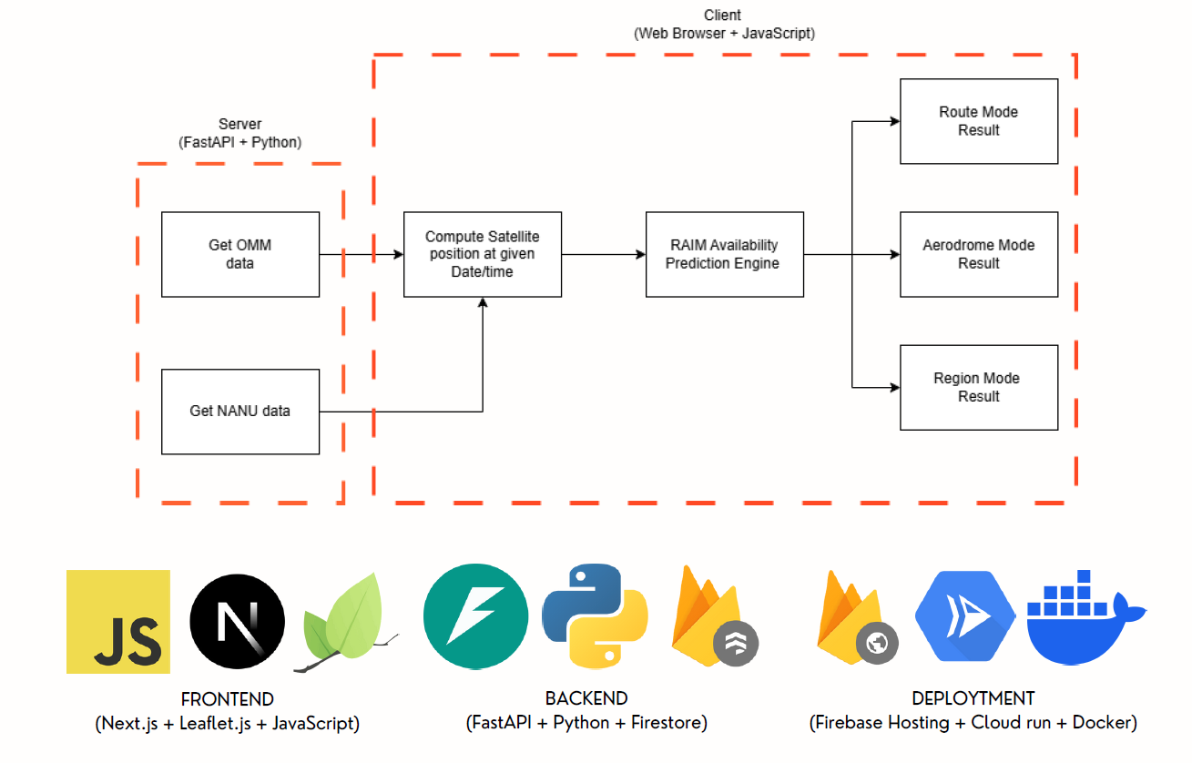 RAPiS (RAIM Availability Prediction System) is a specialized platform designed for aviation safety. Using Orbital Mean-elements Message (OMM) orbital data, we predict GNSS satellite positions along flight routes between airports, assess RAIM (Receiver Autonomous Integrity Monitoring) availability, and visualize signal jamming threats – all to ensure safer flight planning.
