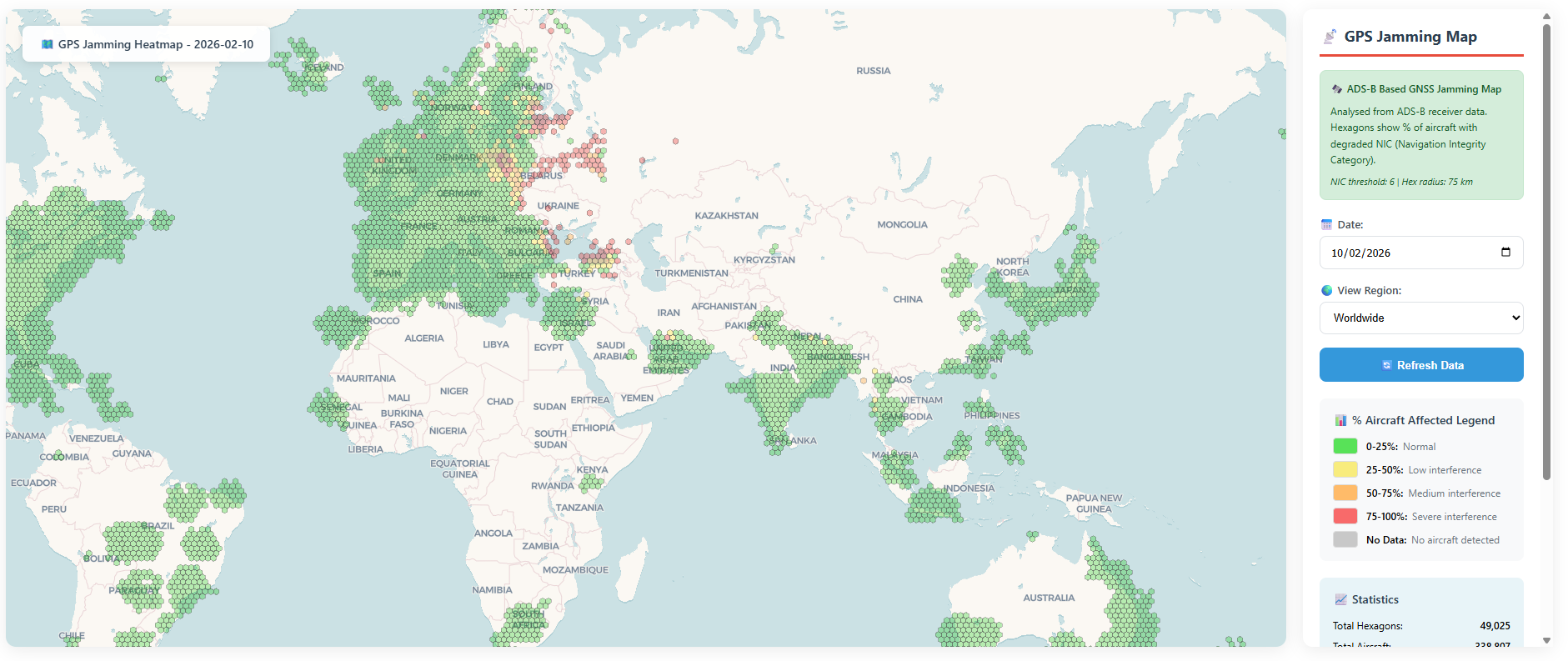 - GPS Jamming Map: Monitor potential GPS signal disruptions and threats.